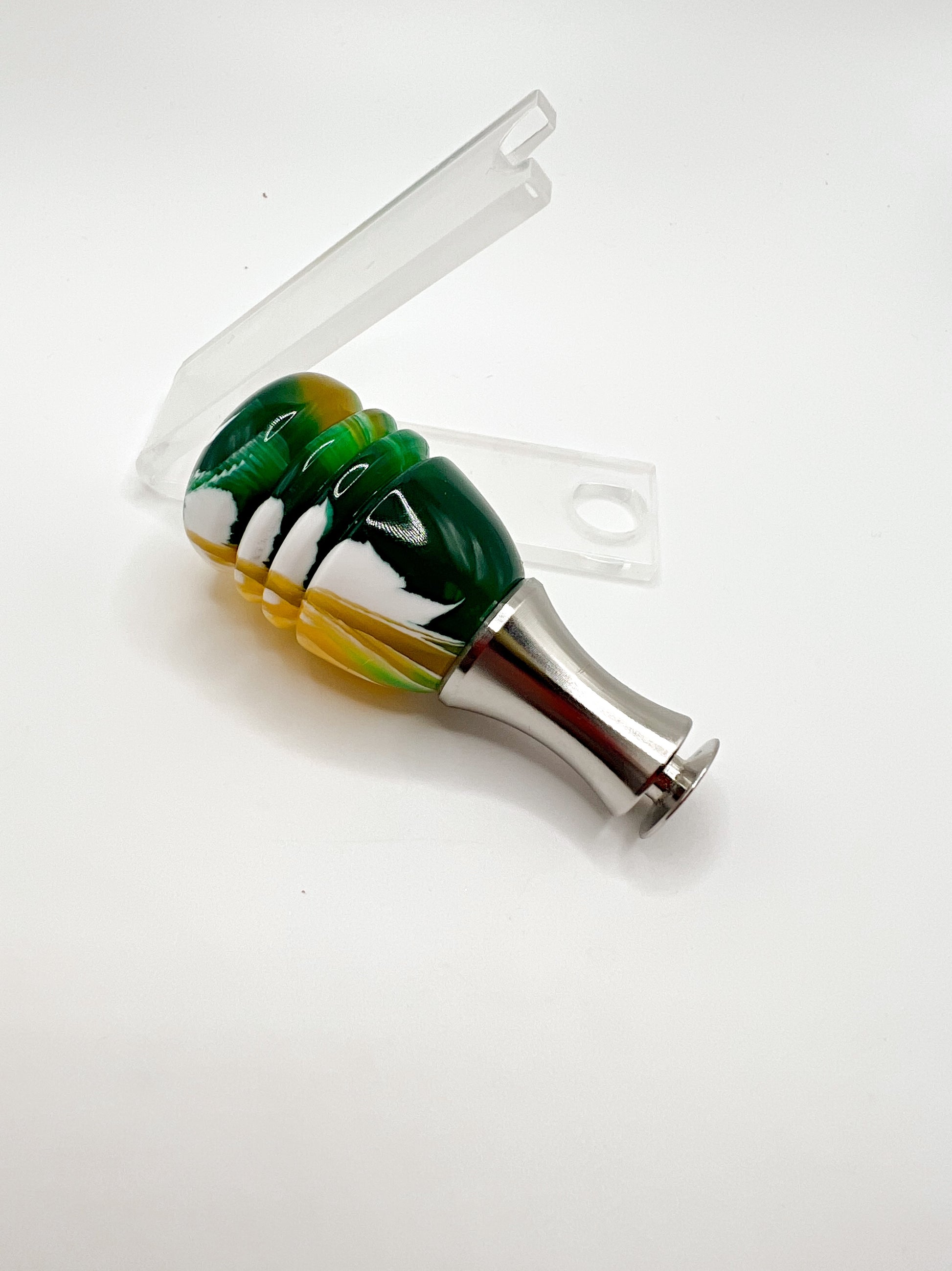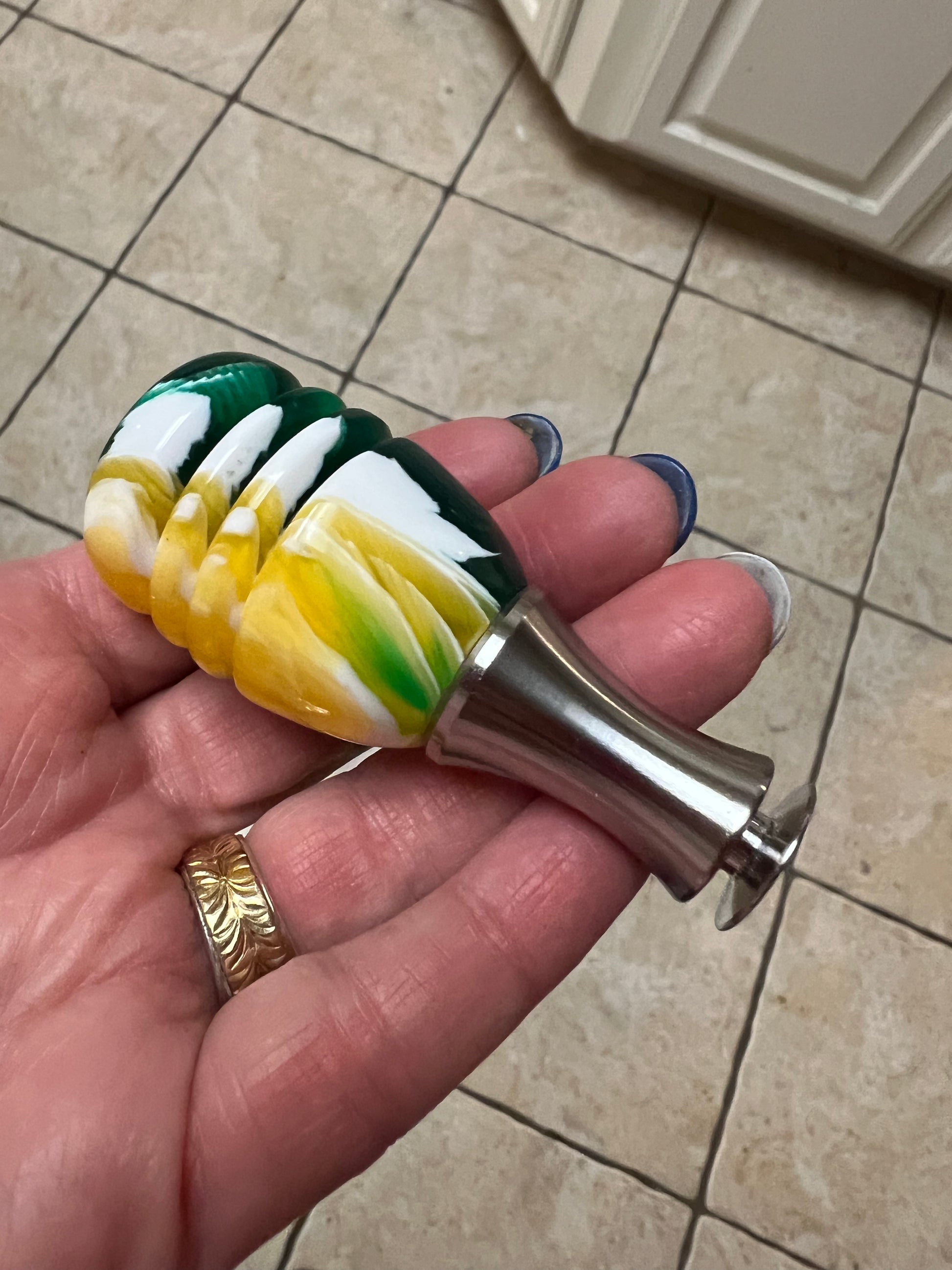 Green, yellow and marble resin drink can opener. Don’t break your nails, use this accessory to assist you.