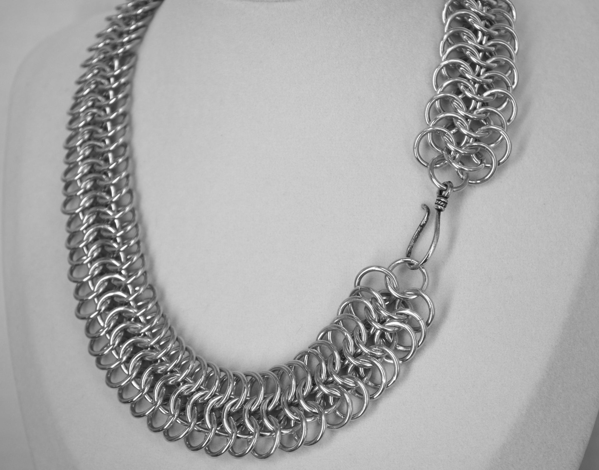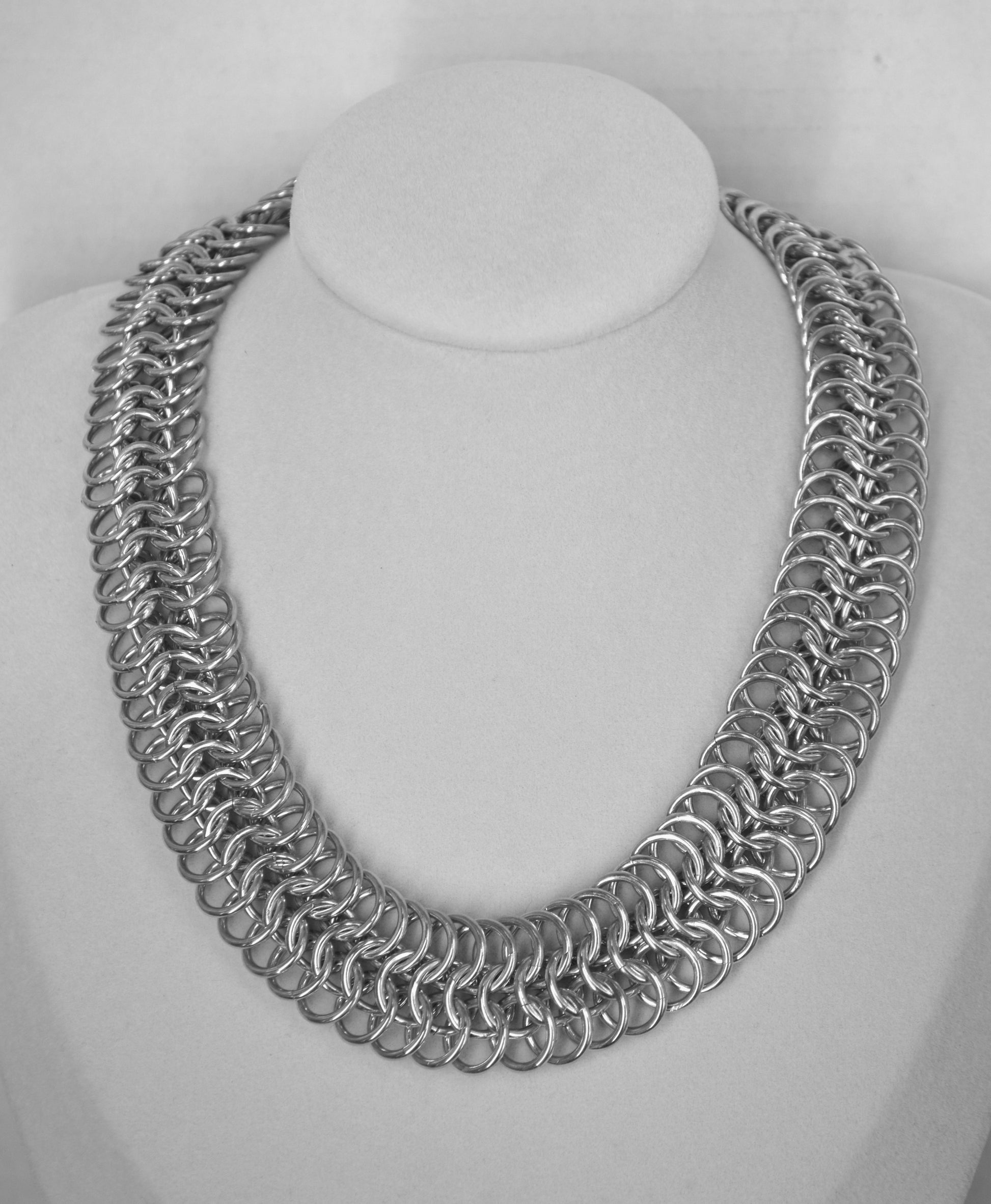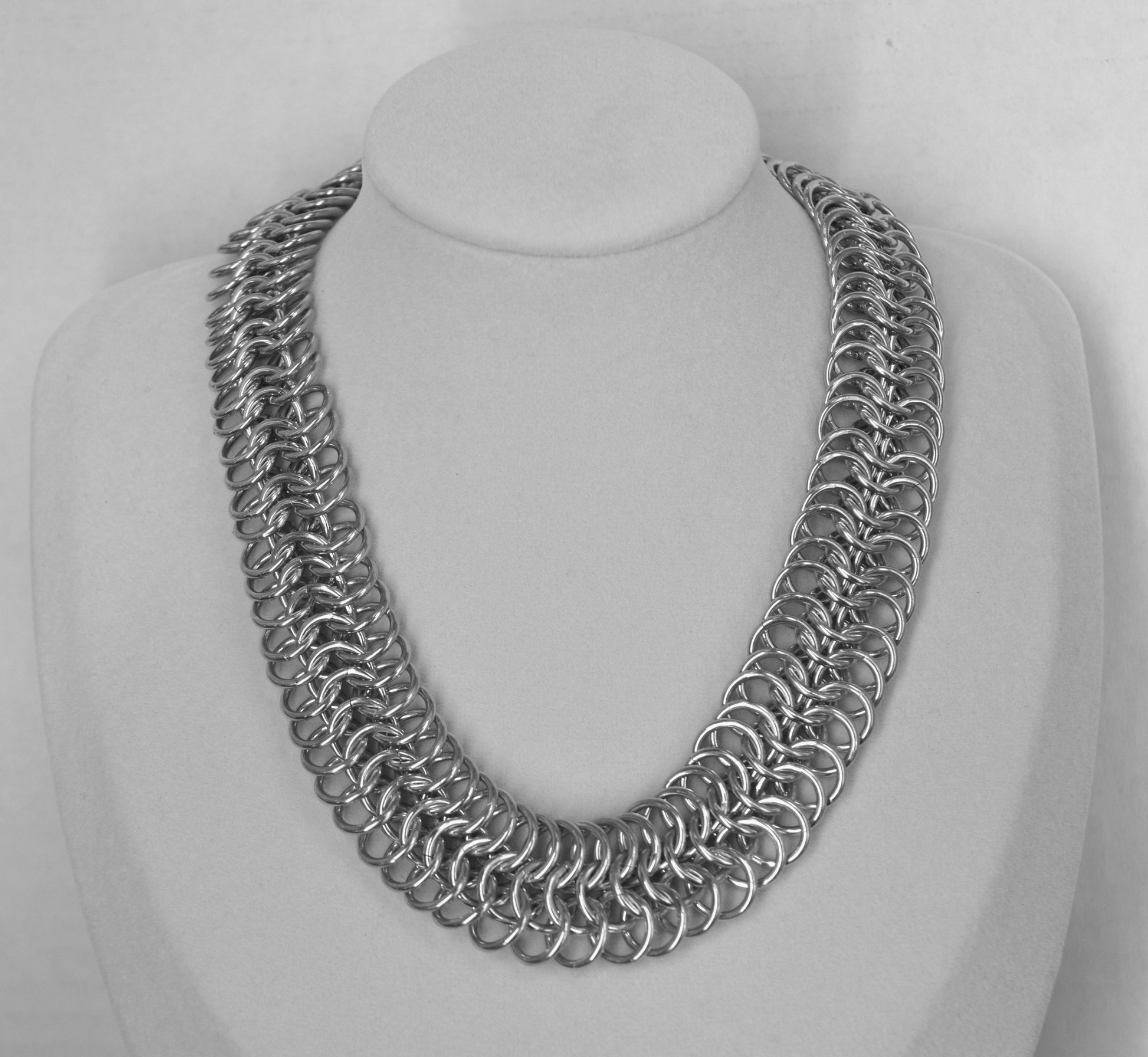 European 6-in-1 weave made with 16ga bright aluminum links and a simple large hook closure. Aprox. 17 1/4 inches.