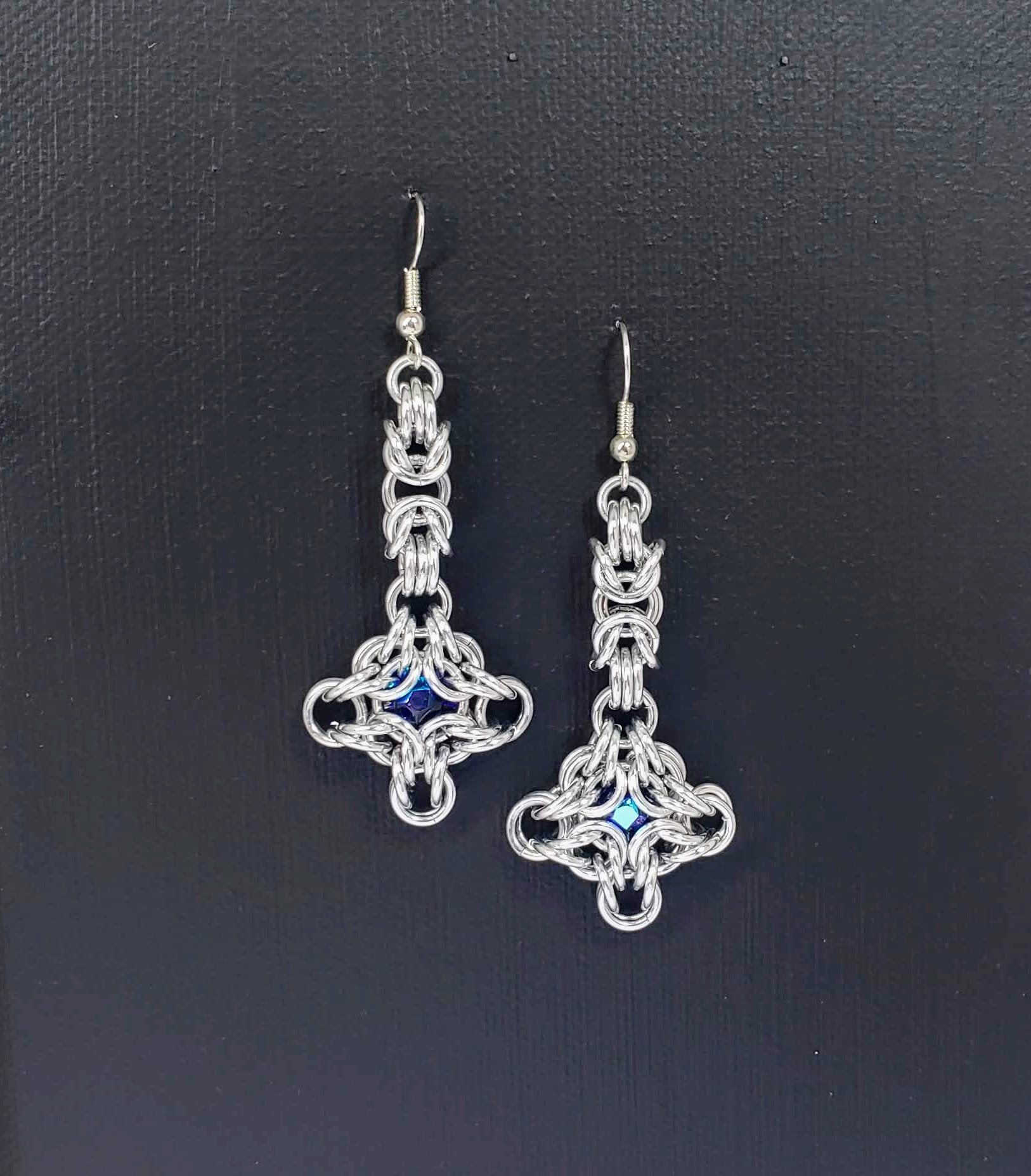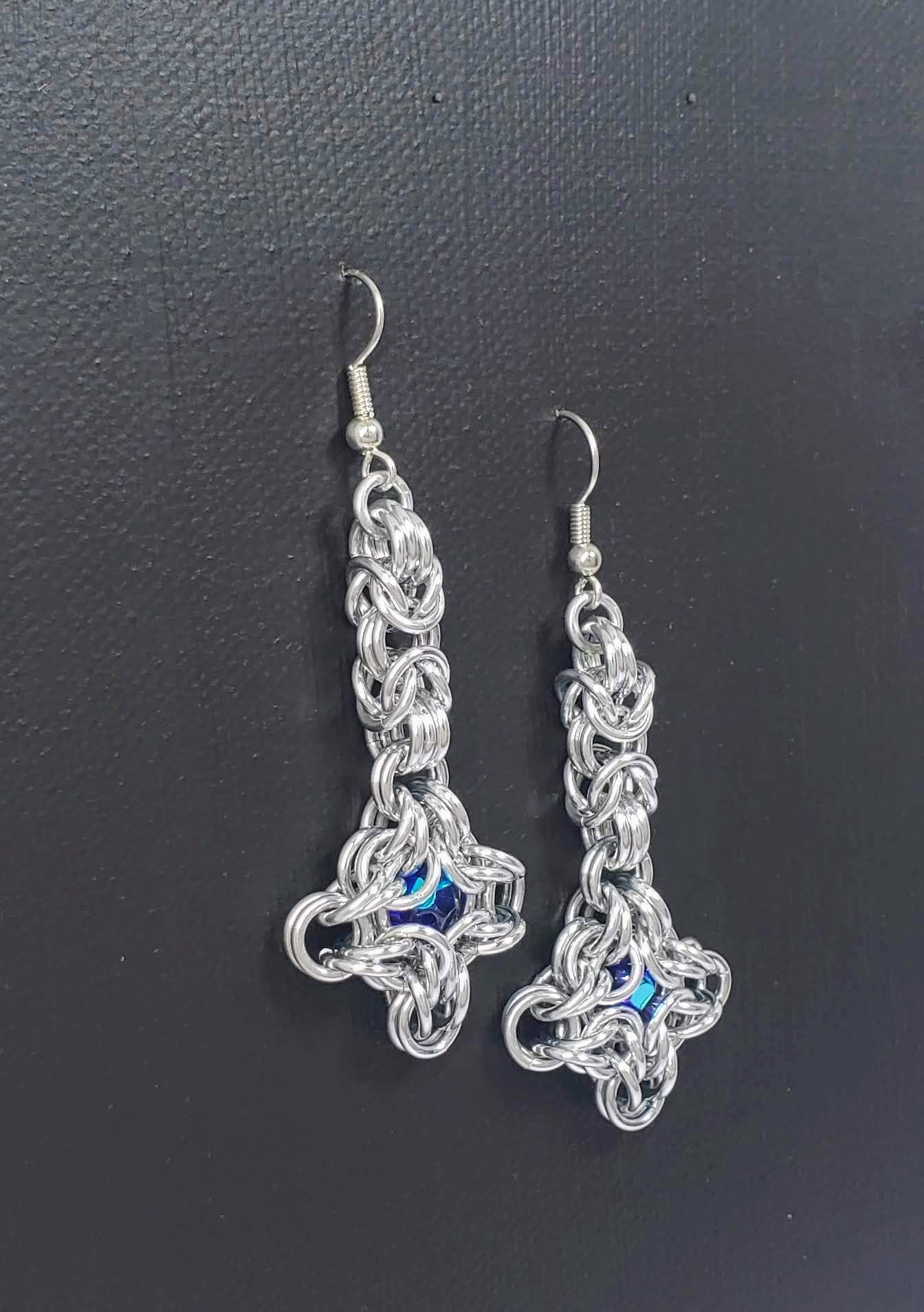 Bright aluminum links shine this star up with a pop of dark blue in the center. Dangle is 5cm long.