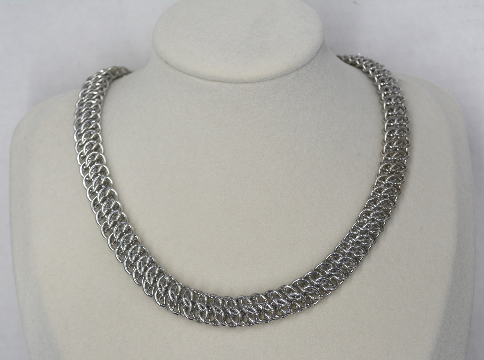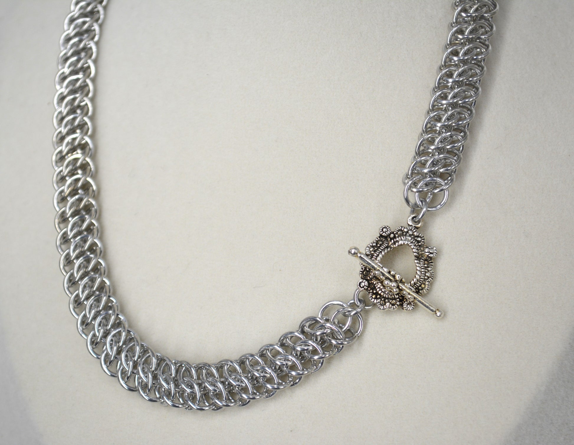 Great Southern Gathering weave made with bright aluminum 18ga links with a detailed toggle clasp. Nice to fidget with.
